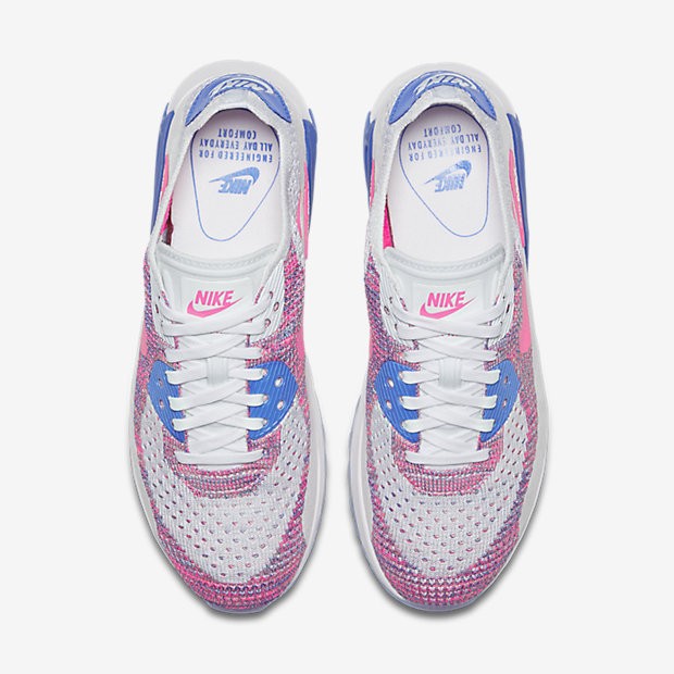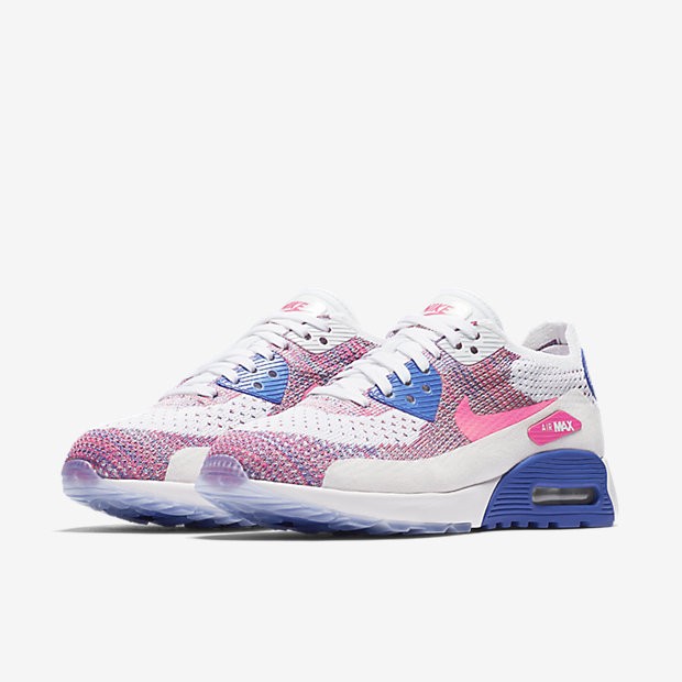 - Chaussure Nike Air Max 90 Ultra 2.0 Flyknit Pour Femme Lifestyle Blanc/Bleu Moyen/Melon Brillant/Rose Coureur_NO. 881109-103