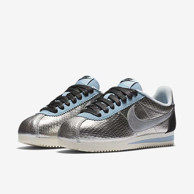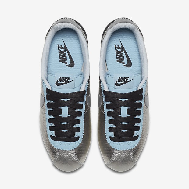 - Chaussure Nike Classic Cortez Leather Premium Pour Femme Lifestyle Argent Métallique/Noir/Bleu Mica/Argent Métallique_NO. 833657-004