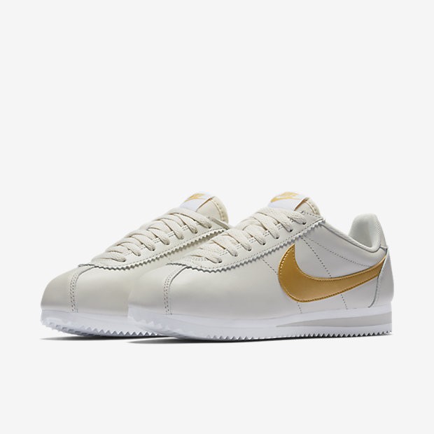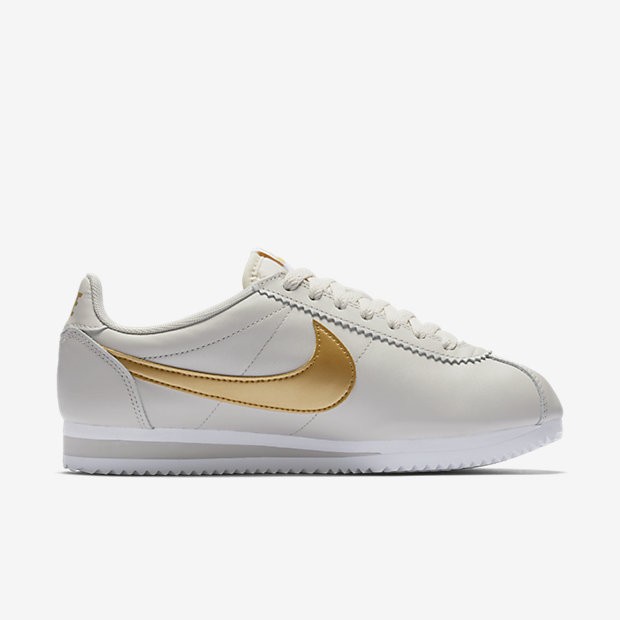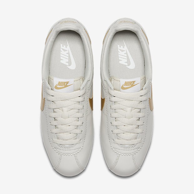 - Chaussure Nike Classic Cortez Pour Femme Lifestyle Beige Clair/Blanc/Or Métallique_NO. 807471-011