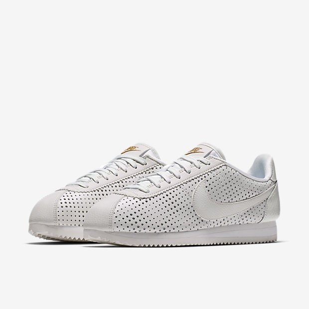 - Chaussure Nike Cortez Classic Premium Qs Pour Femme Lifestyle Blanc Sommet/Or Métallique/Blanc Sommet_NO. AA1436-100